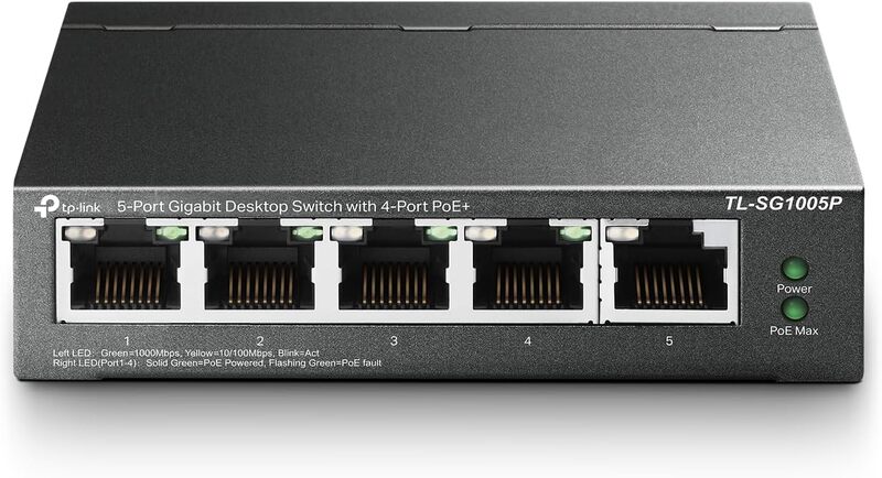 TP Link 5 Port GB switch. 4 POE Ports @65W